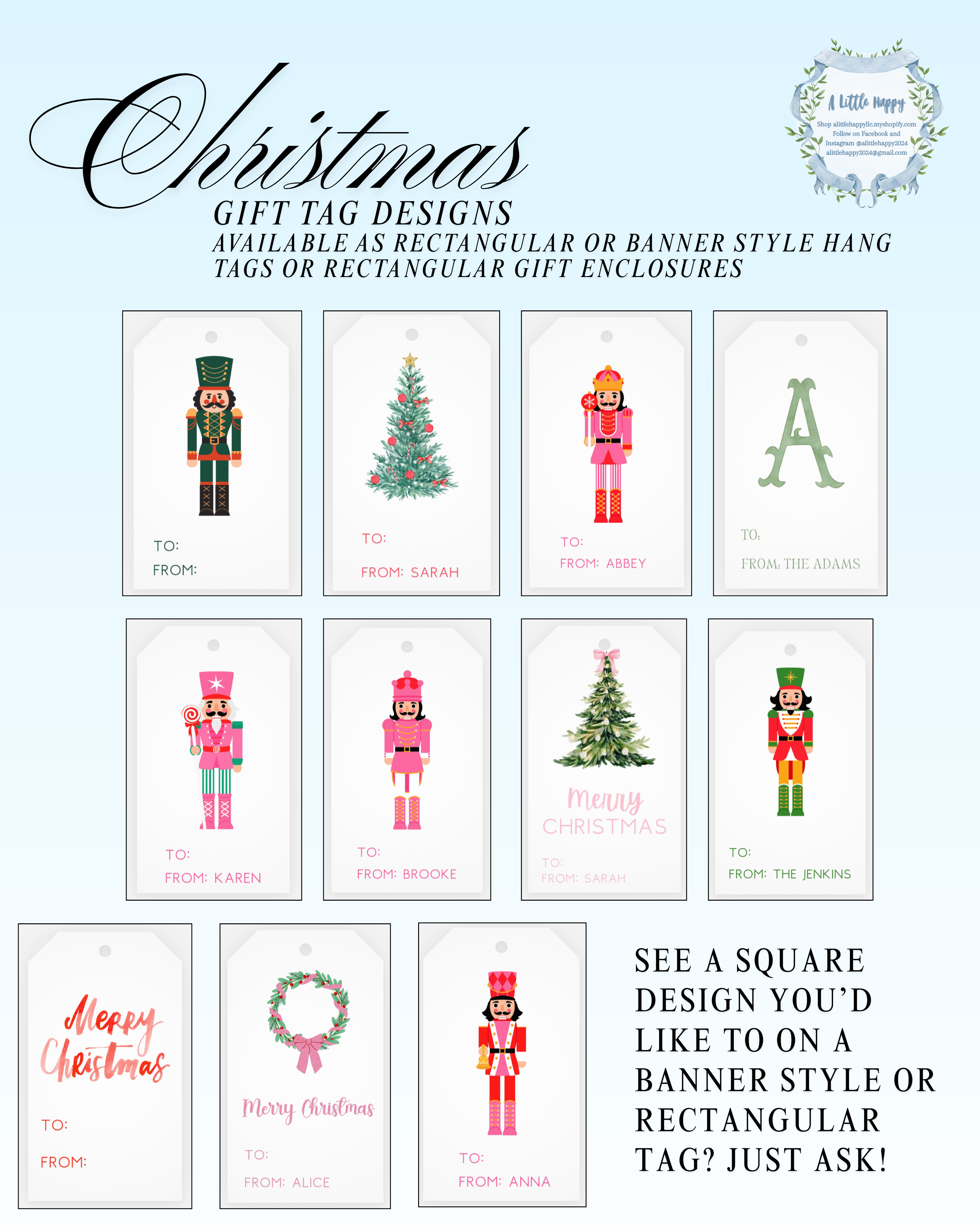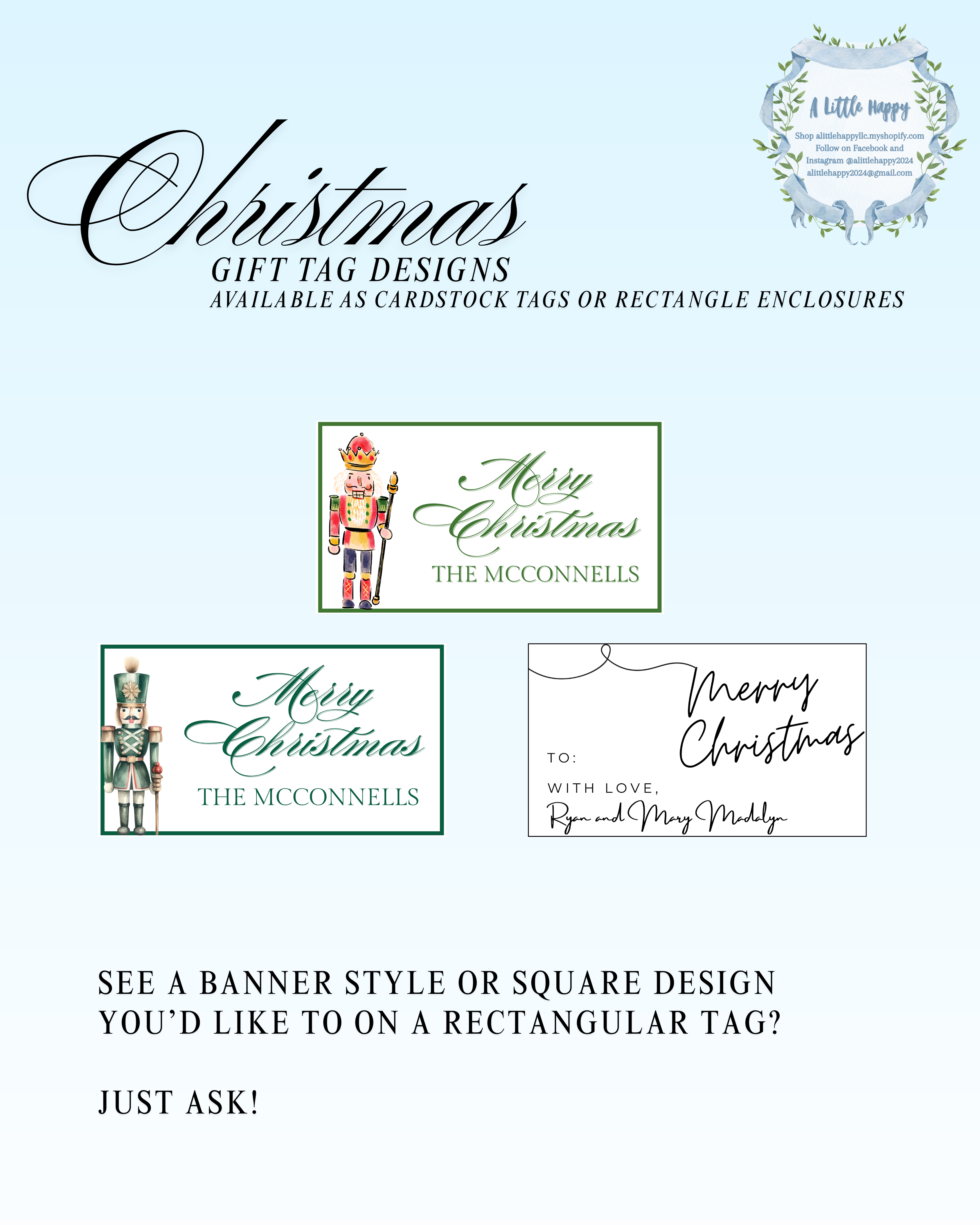 I’d love to create a custom piece just for you! Check out my item offerings and samples below. When you make your selections, be sure to include any details, inspiration, or deadlines you have in mind! I will share a proof with you and get your approval before printing. The cost of your custom order includes an initial proof and two additional revisions. Additional revisions may incur an additional design fee.