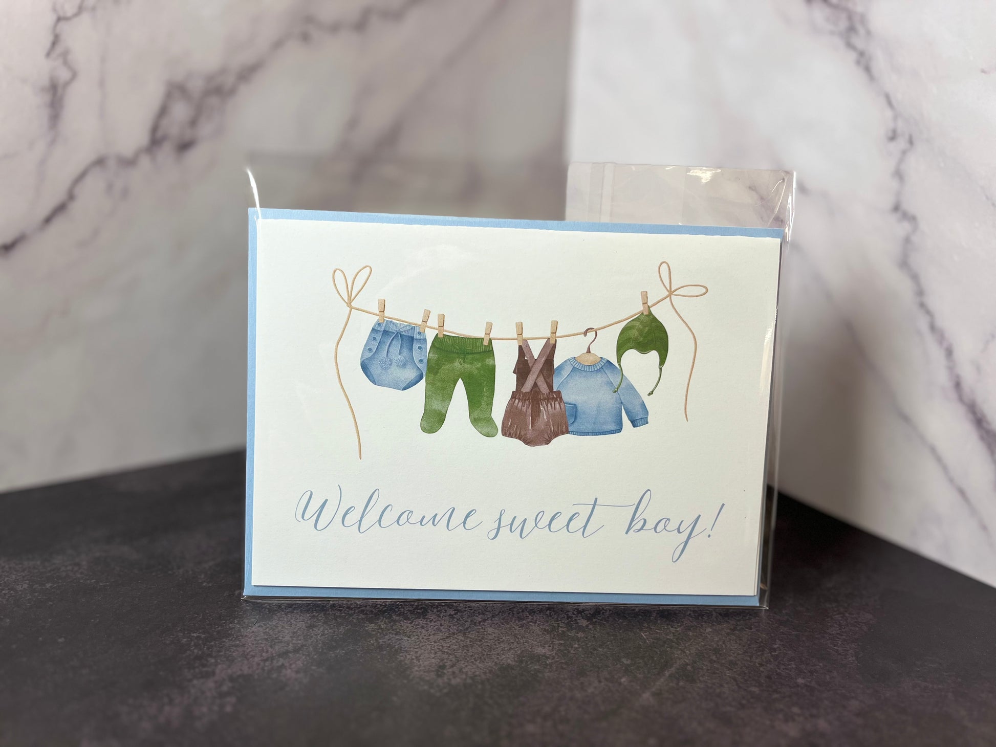 Blue "Welcome sweet boy!" Baby Shower or Arrival Card