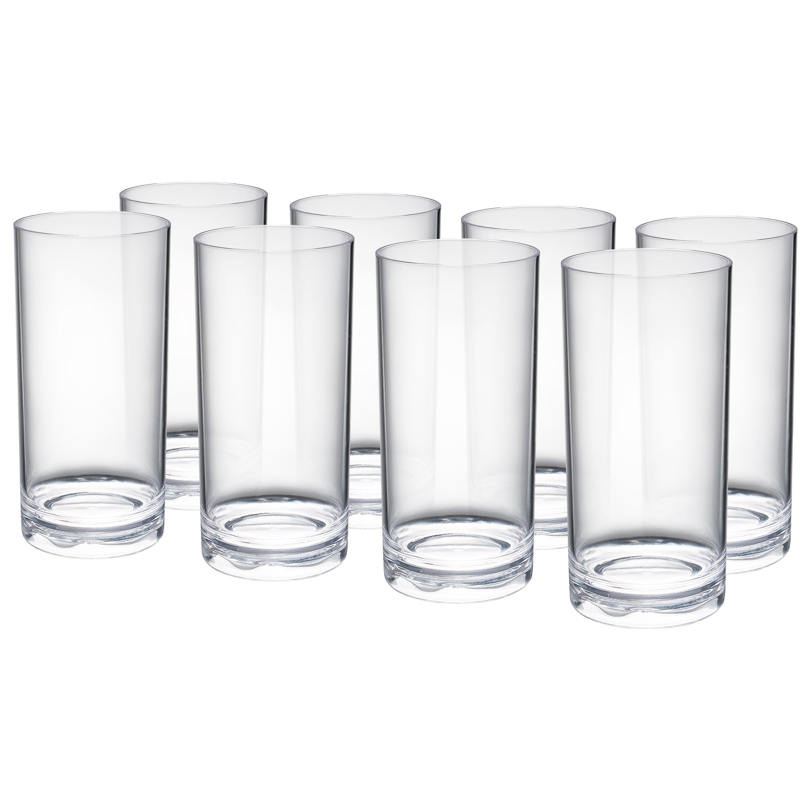 Barcelona Acrylic Highball Glassware, Clear, Set of 8. 5.8"H X 2.9" dia. 16 ounces.