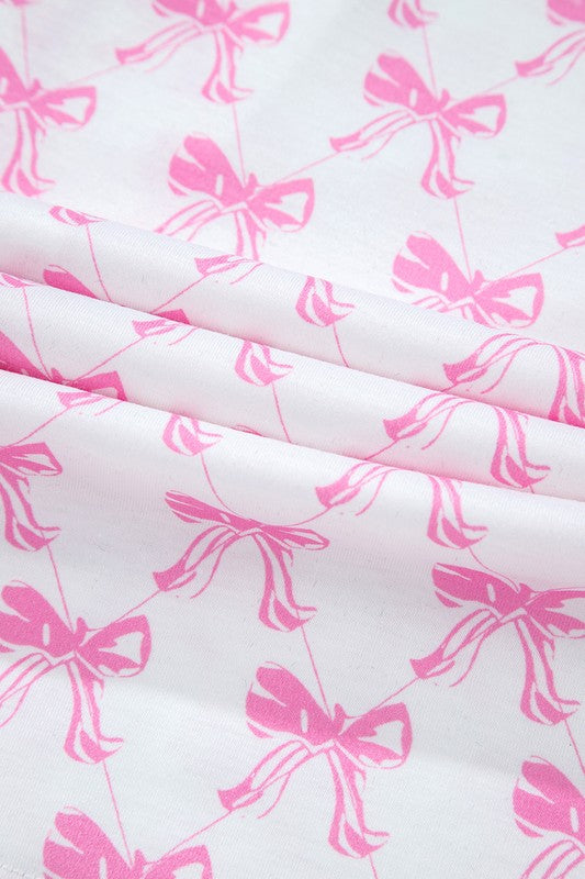 Bowknot Shirt and Ruffle Hem Shorts Pajama Set