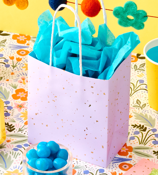 These adorable treat bags come in a variety of bright & bold colors and have gold foil accents. Perfect for birthday parties and other special occasions! Designed by Paper Source