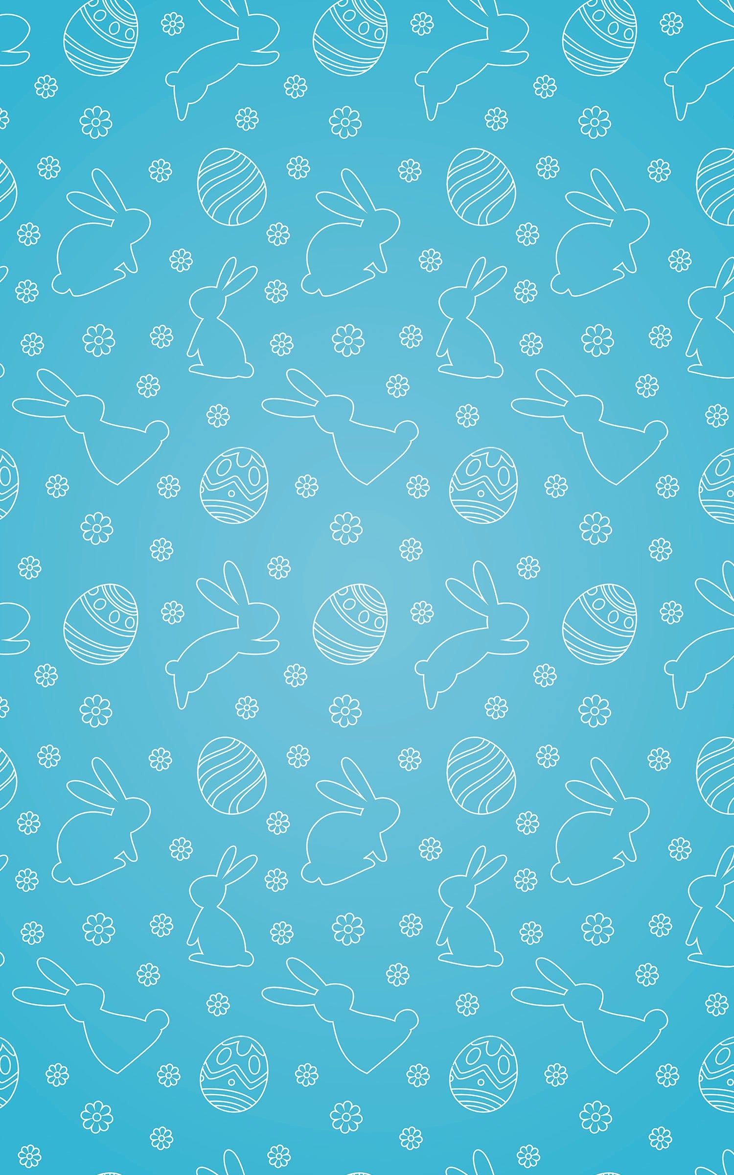 Hop into spring with our adorable Bunny Blues design! This cheerful Easter and springtime pattern features playful white bunnies in different poses — sitting, hopping, and leaping — surrounded by beautifully decorated Easter eggs and sweet floral clusters. The clean line-art style pops against a soothing gradient background that blends light blue to teal blue, capturing the fresh, airy feeling of spring skies. Perfect for Easter gifts, children’s clothing, festive décor, or DIY crafts, this elegant yet whimsical design adds a refreshing seasonal touch to any creation.