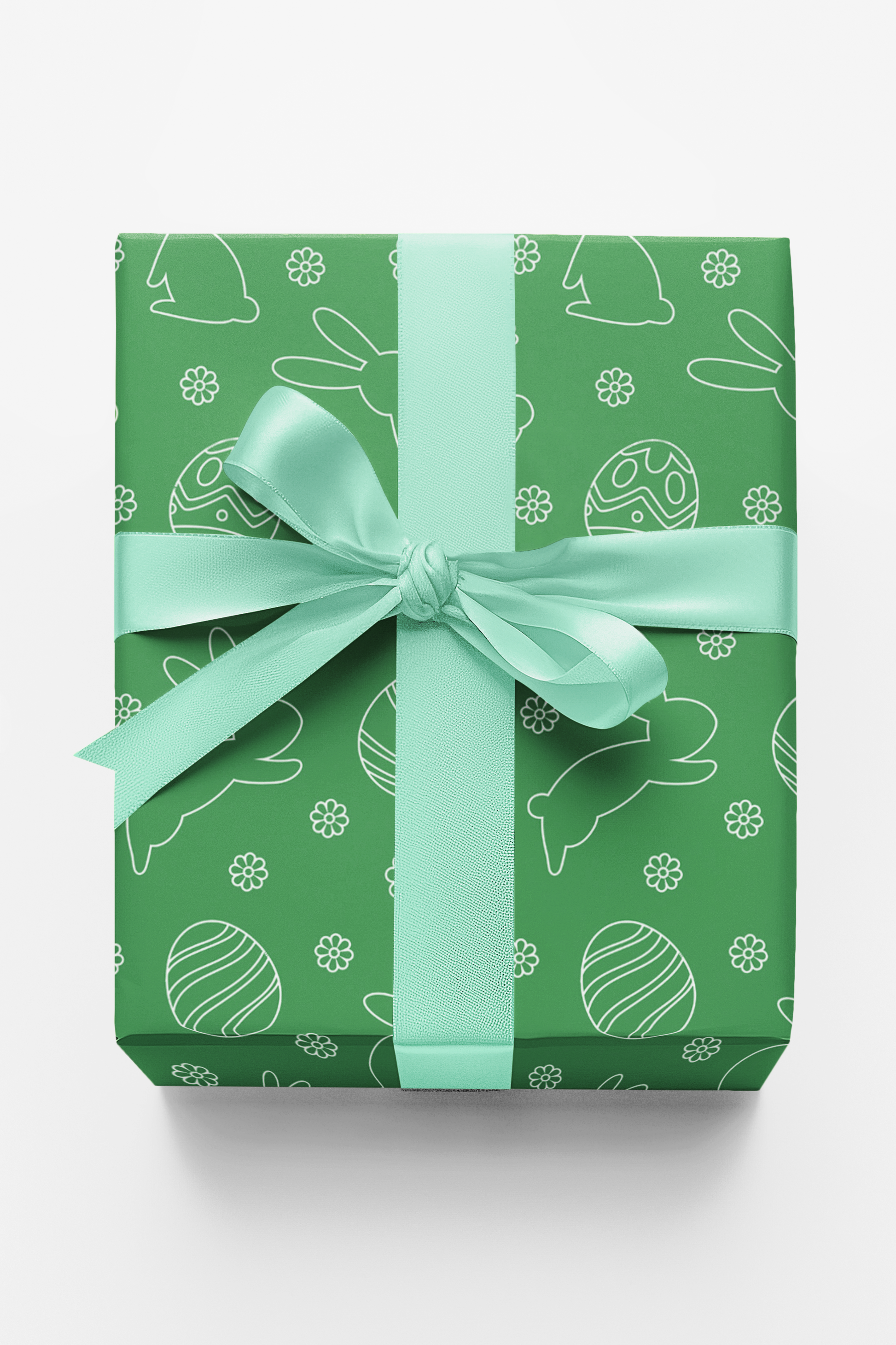 Bring playful spring charm to your gifts with our Bunny Verde design! This cheerful wrapping paper features a lively green background filled with white outline illustrations of hopping bunnies, Easter eggs, and delicate flowers. The clean, modern vector style gives it a fresh and festive look, perfect for Easter, spring birthdays, baby showers, or any occasion that calls for bright seasonal joy. Add a touch of fun and freshness to your wrapping with this vibrant, nature-inspired pattern.