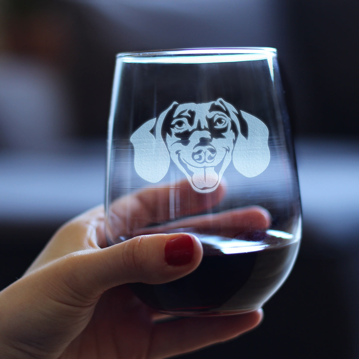 Dachshund Face Stemless Wine Glass - Cute Dog Themed Decor and Gifts for Moms & Dads of Dachshunds - Large 17 Oz