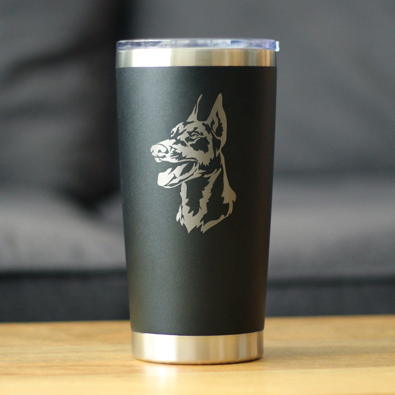 Doberman Face - Insulated Coffee Tumbler Cup with Sliding Lid - Stainless Steel Travel Mug - Doberman Dog Gifts for Women and Men