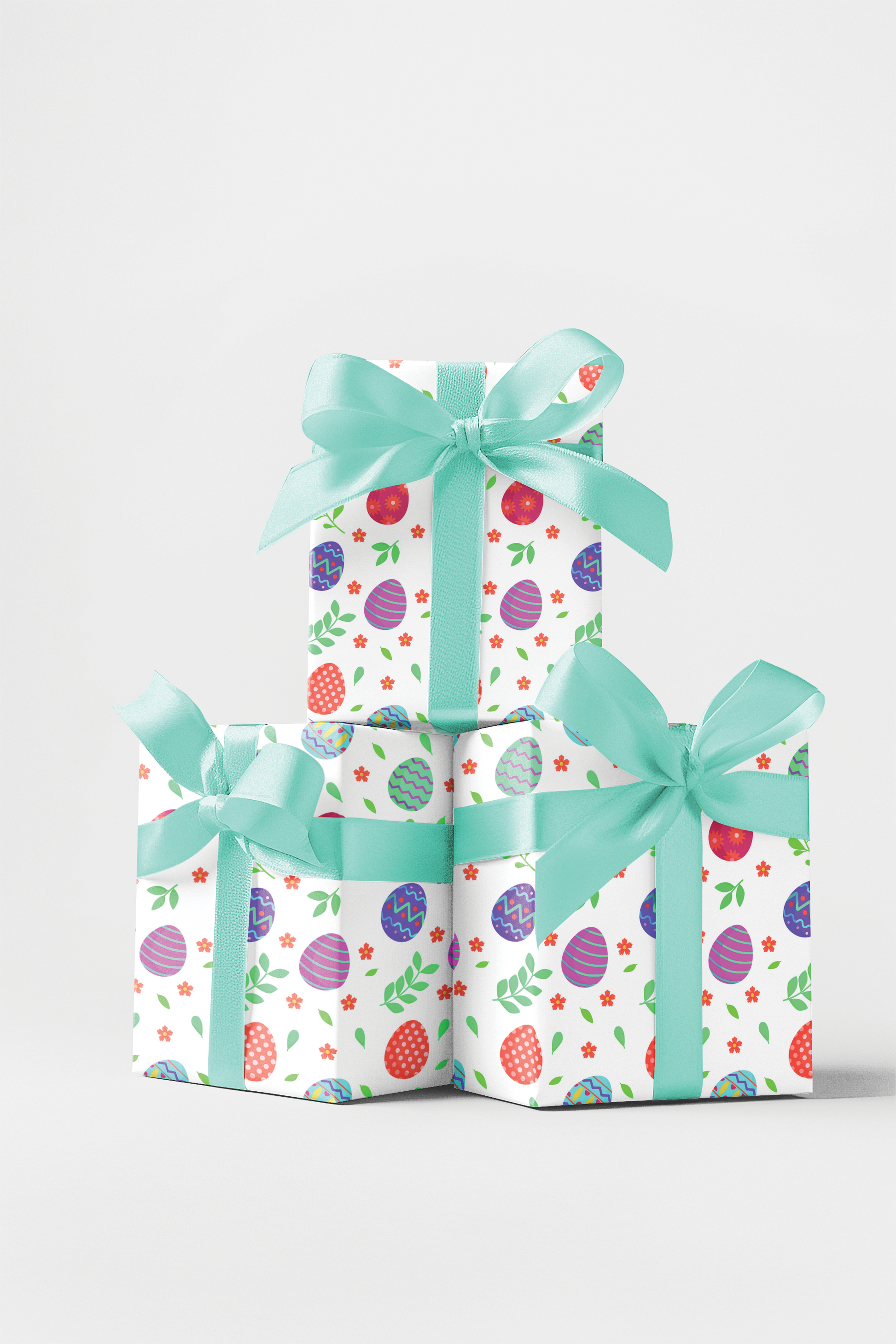 Celebrate spring and Easter with our “Eggs-actly What You Want 1†wrapping paper! This cheerful, hand-painted design features a repeating scatter of brightly decorated Easter eggs in hot pink, bright purple, aqua/mint green, and coral/red-orange, decorated with polka dots, stripes, and zigzags. Fresh lime green leaves and small coral flowers add a playful, springtime touch against a clean white background. Perfect for Easter baskets, spring birthdays, baby showers, or festive gifts, this vibrant pattern brings joyful color and fun to any present.