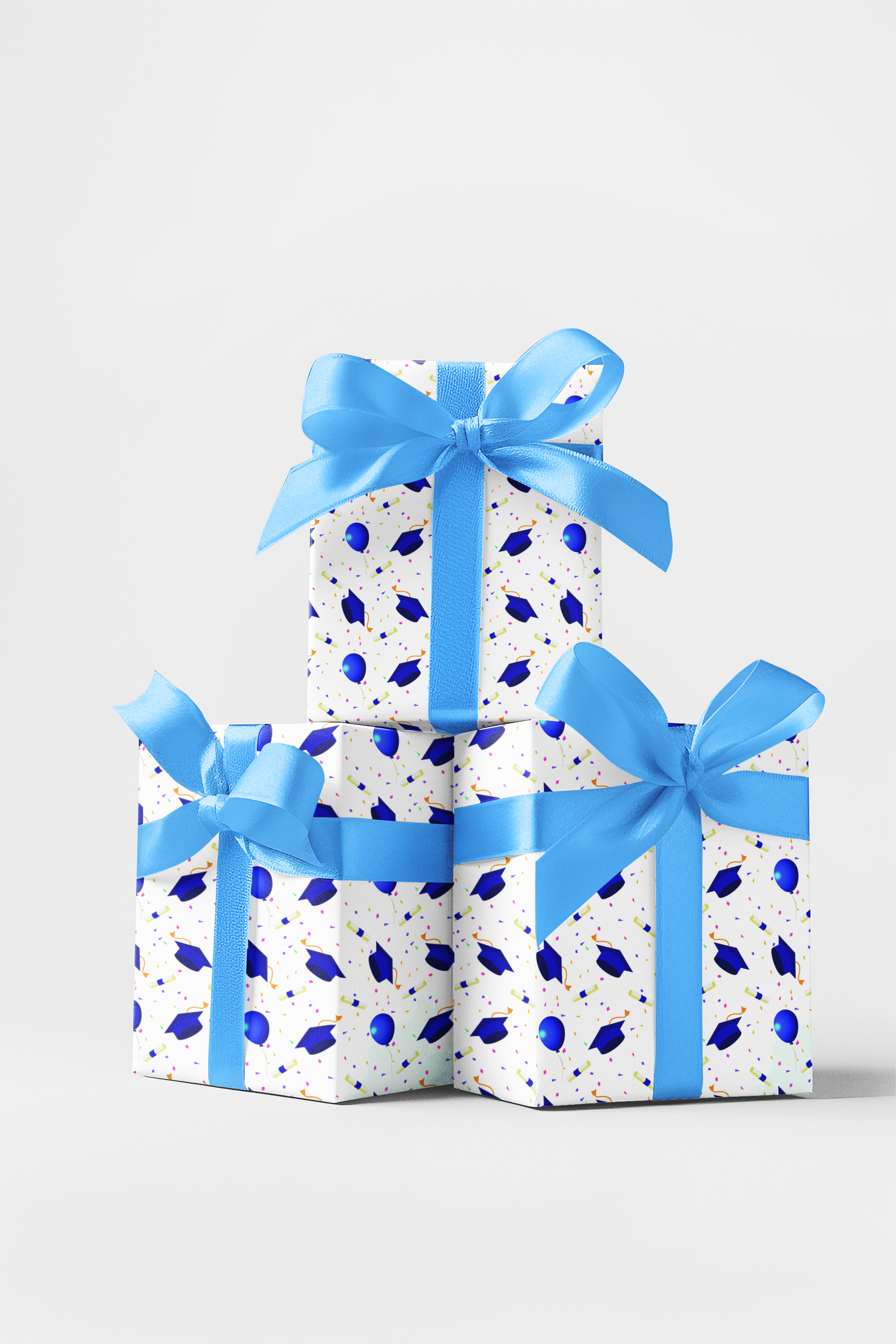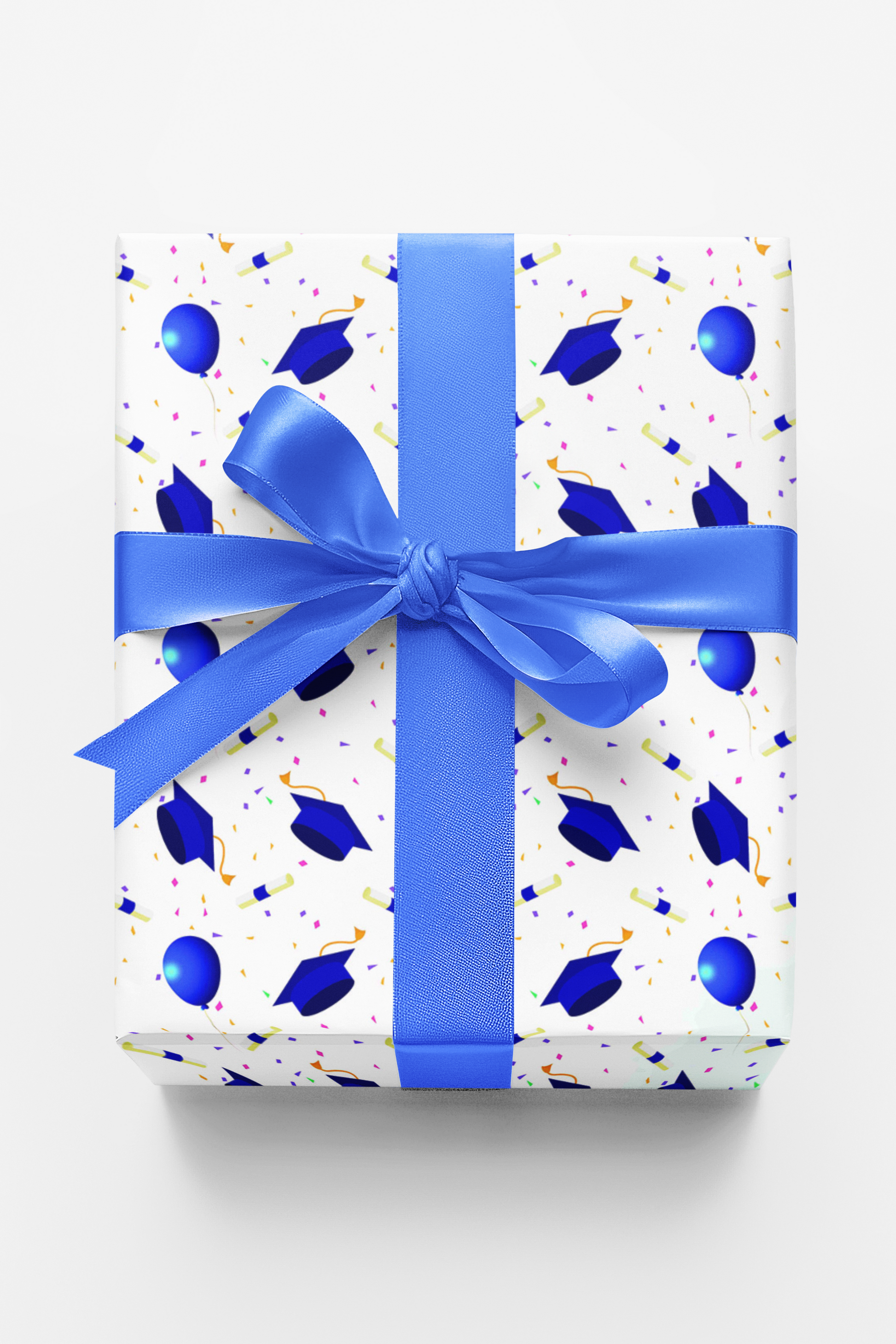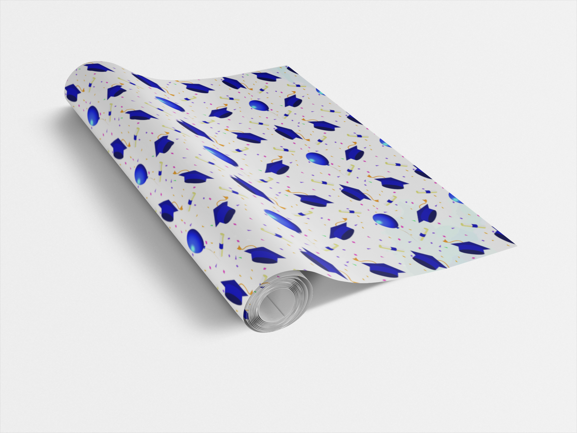 Celebrate every graduate’s big moment with our Graduation in Blue Wrapping Paper and Matching Tag Set! This lively design features blue graduation caps with bright orange tassels, colorful confetti, and cheerful blue balloons scattered across a crisp white background. Fun, festive, and full of color, it perfectly captures the excitement and pride of graduation day. Ideal for wrapping gifts for graduates of all ages—from preschool to college—this premium wrapping paper adds a joyful, celebratory touch to every milestone.