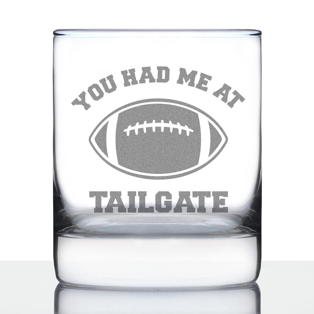 Had Me At Tailgate - Whiskey Rocks Glass - Funny Football Gifts for Men and Women - 10.25 oz Glasses