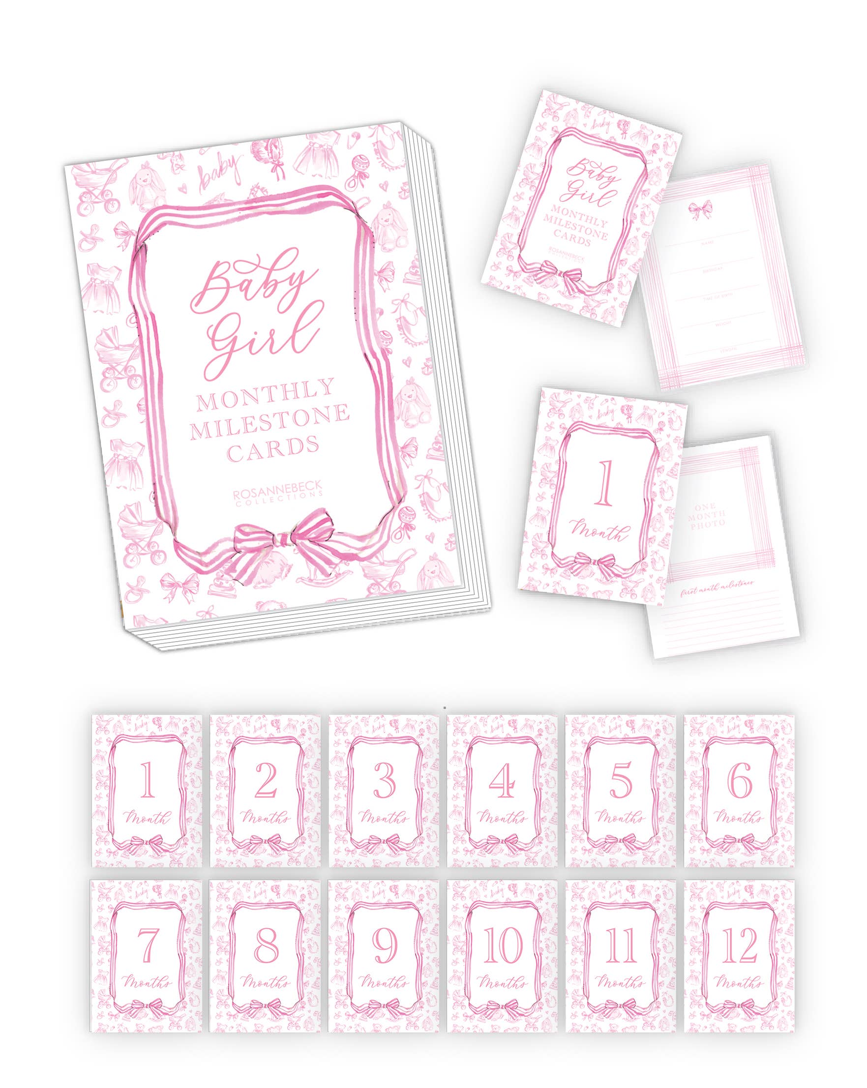 Handpainted Baby Toille Pattern Pink Milestone Cards