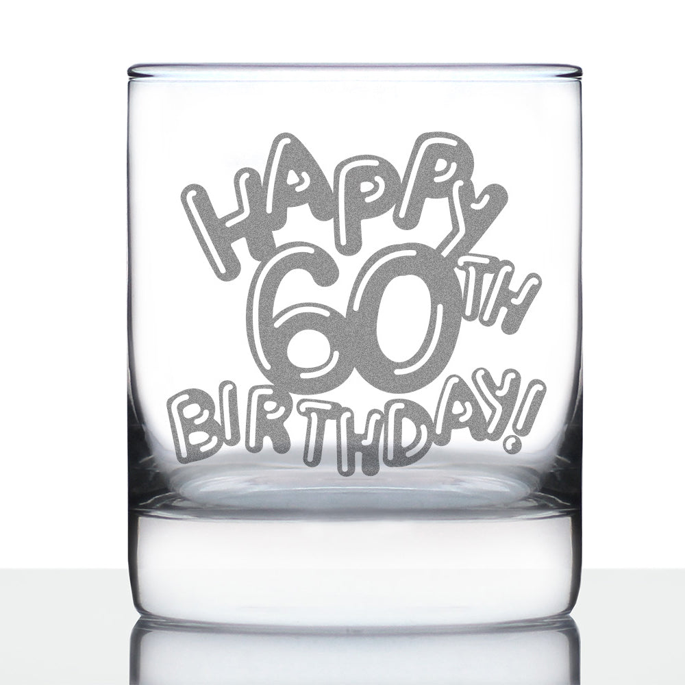 Happy 60th Birthday Balloons - Whiskey Rocks Glass Gifts for Men & Women Turning 60 - Fun Retro Bday Whisky Drinking Tumbler