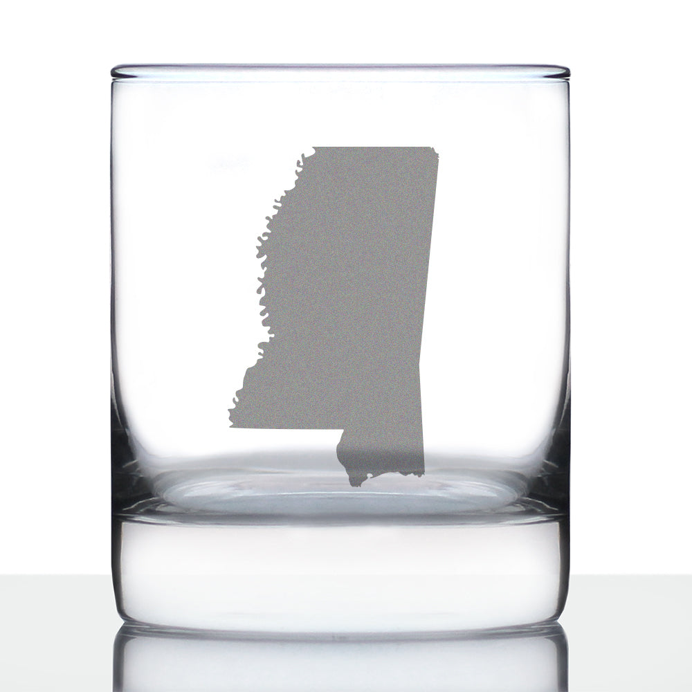 Mississippi State Outline Whiskey Rocks Glass - State Themed Drinking Decor and Gifts for Mississippian Women & Men - 10.25 Oz Whisky Tumbler Glasses