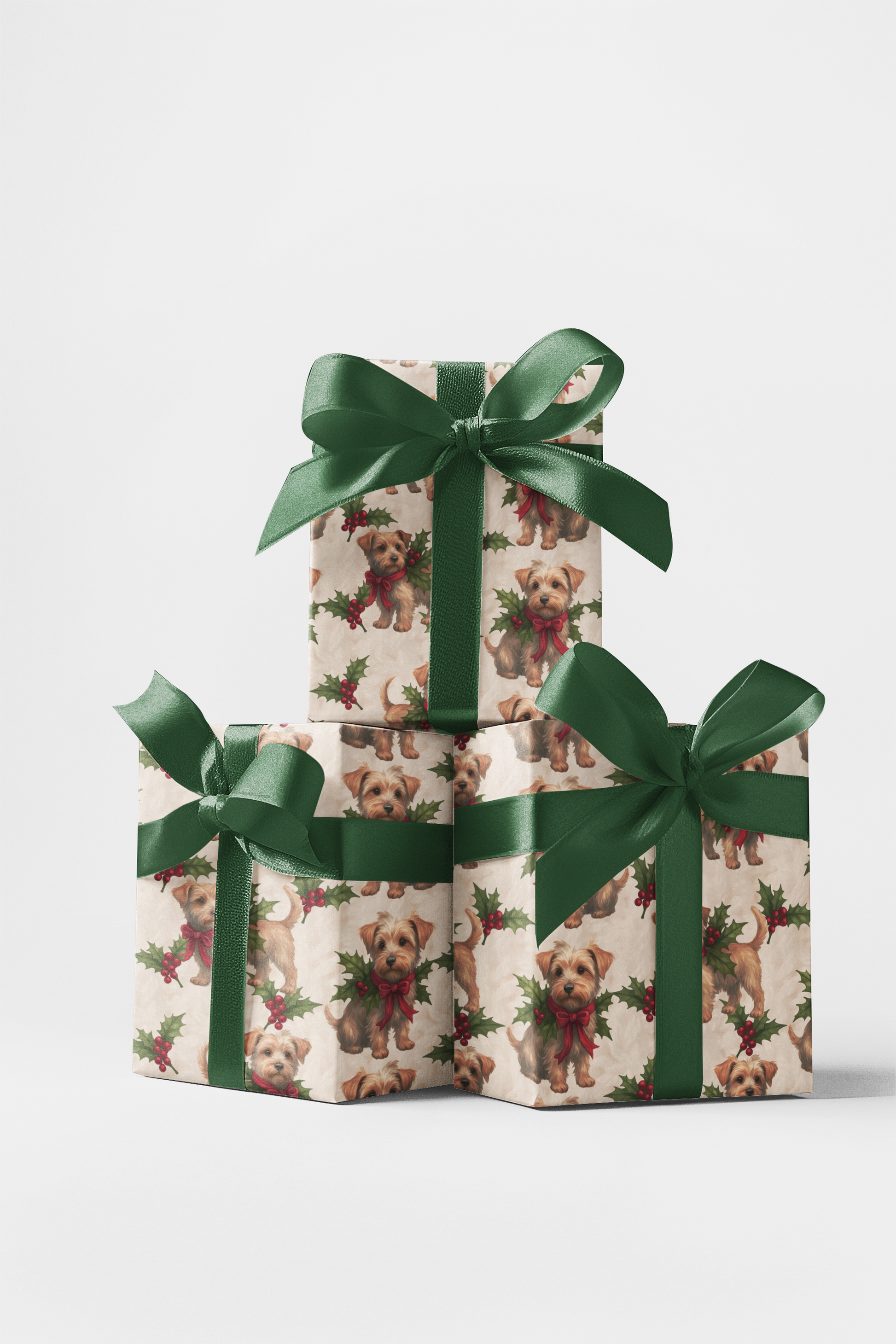 Celebrate the holidays with the distinctive charm of the Dandie Dinmont Terrier. This Christmas-themed wrapping paper highlights the breed’s signature topknot and long body, paired with festive seasonal accents for a warm, cheerful touch. Perfect for dog lovers who want every gift to capture the magic of the season.