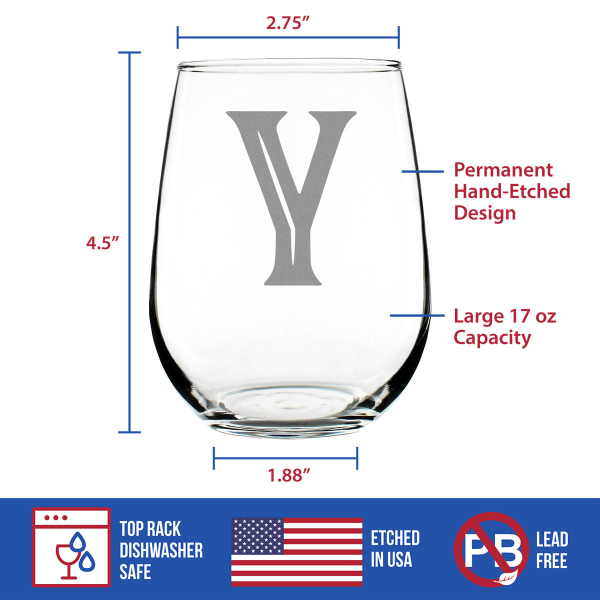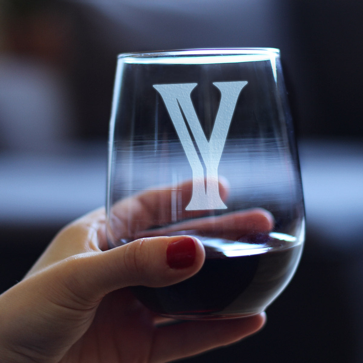 Monogram Bold Letter Y - Stemless Wine Glass - Personalized Gifts for Women and Men - Large Engraved Glasses