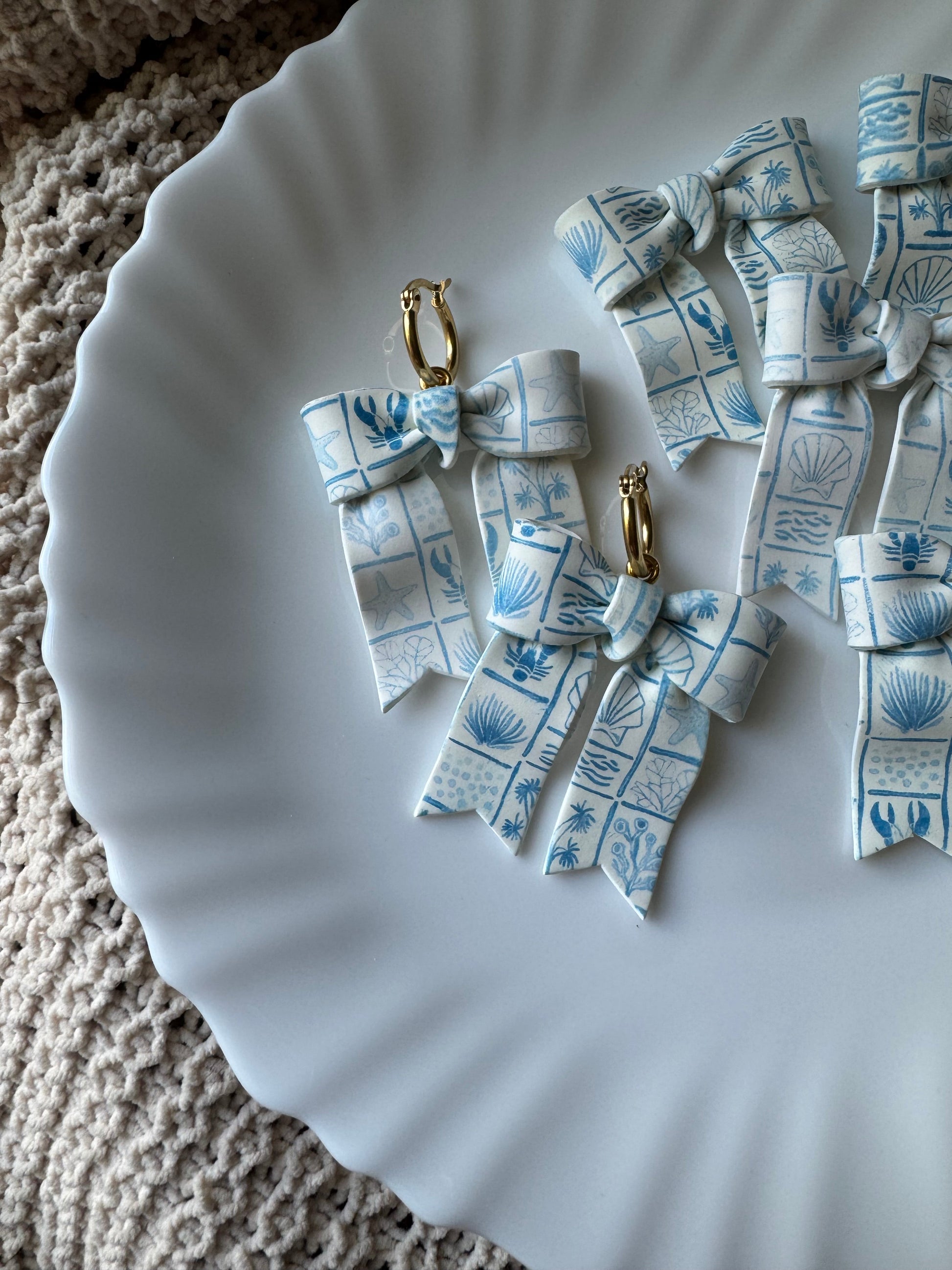 Earrings are made of polymer clay and hardware is 14k gold plated - nickel free. Each piece is rolled, cut, baked, sanded and assembled by hand, so sizes and custom-mixed colors will vary per piece. Due to the handmade nature of my pieces, slight imperfections are inevitable. Every piece is truly one of a kind.