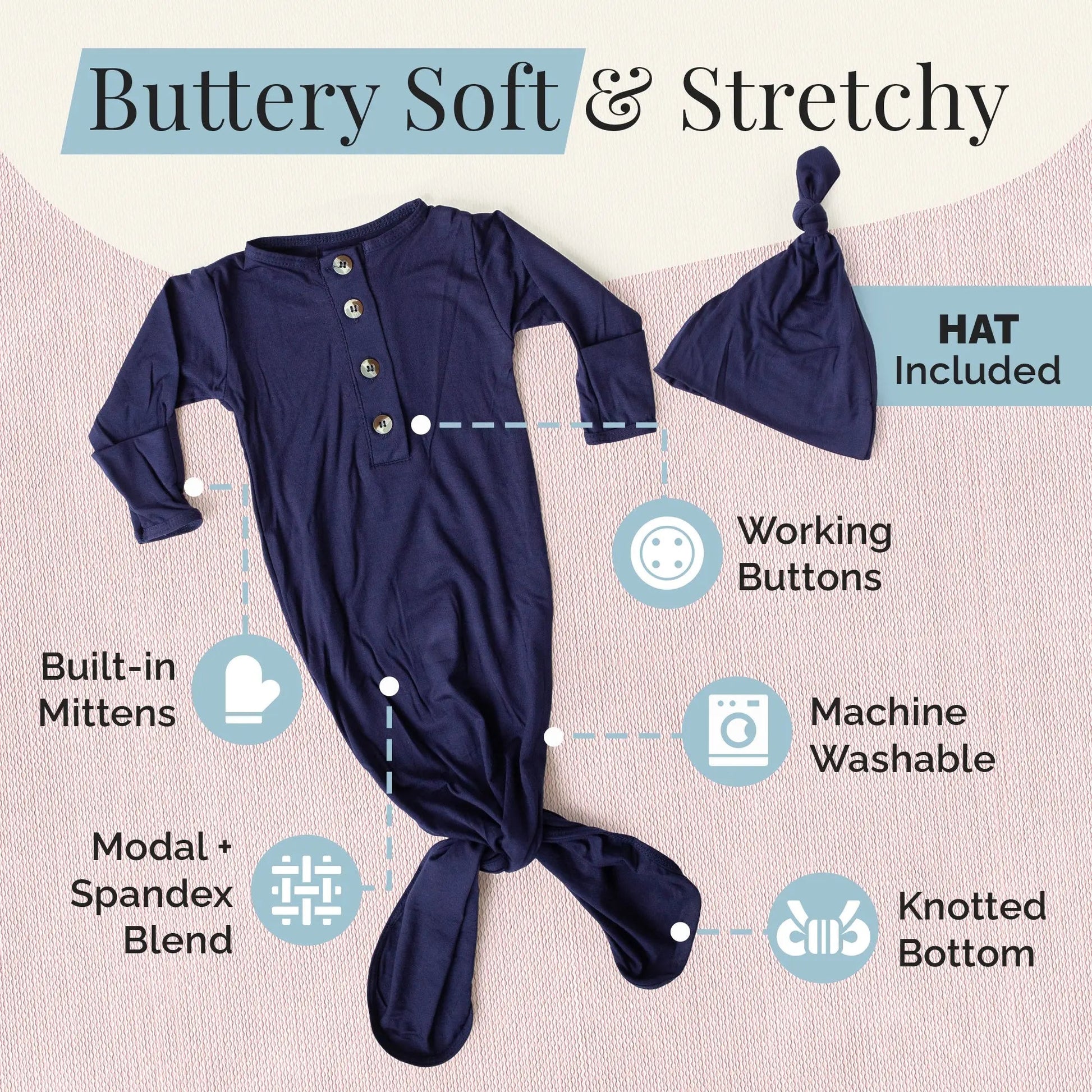 - Quick Outfit Changes - Our Henley style knotted newborn gowns have working buttons. So, you can easily dress your baby boy in these cute baby clothes from the head down or bottom up.