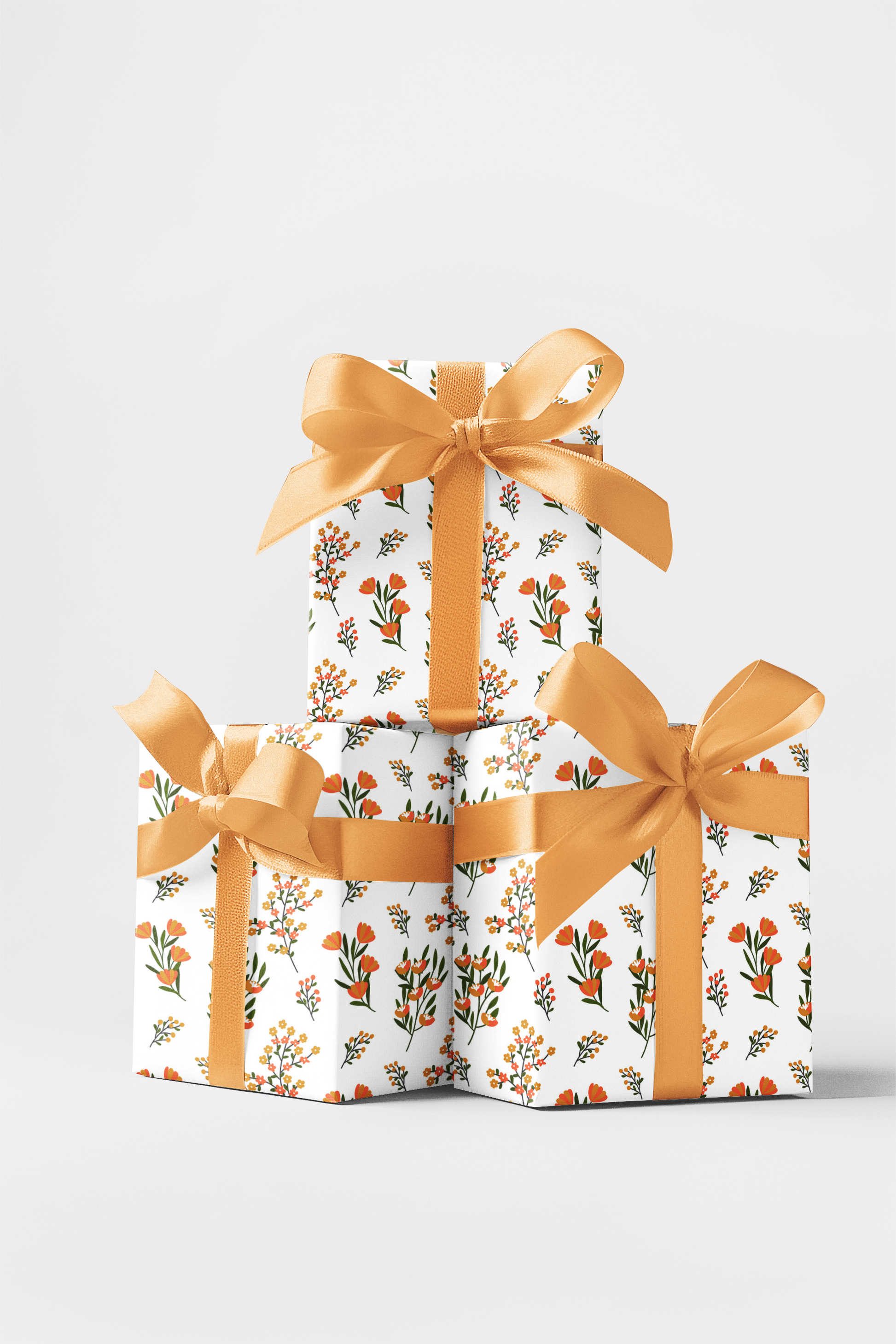 Bring sunshine to your gifts with this Orange Wild Flowers floral wrapping paper. Featuring bright orange and yellow wildflowers and berries on a crisp white background, this modern design adds a cheerful, natural touch to any present. Perfect for birthdays, Mother’s Day, weddings, or any spring and summer celebration.