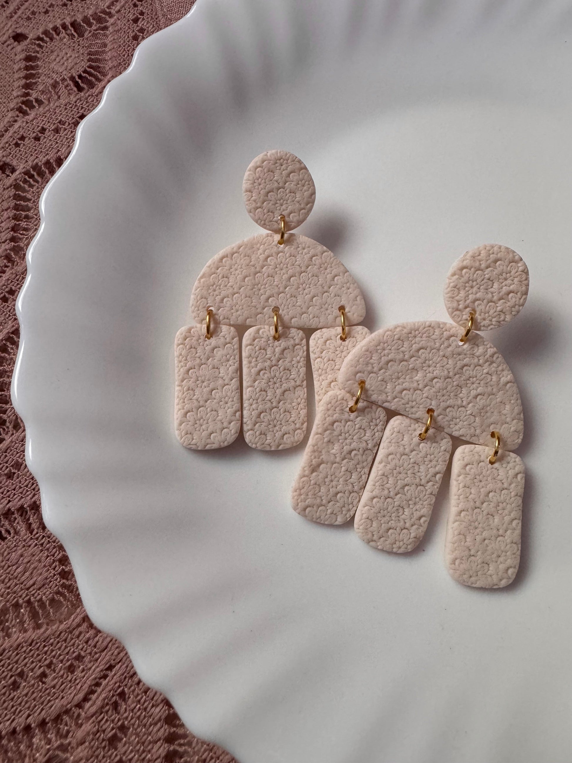 Earrings are made of polymer clay and hardware is surgical grade steel - nickel free. Each piece is rolled, cut, baked, sanded and assembled by hand, so sizes and custom-mixed colors will vary per piece. Due to the handmade nature of my pieces, slight imperfections are inevitable. Every piece is truly one of a kind.