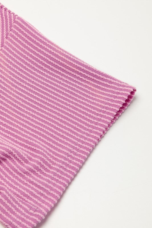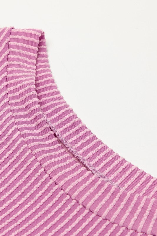 Ribbed Textured Knit Loose Fit Tee and Shorts Set