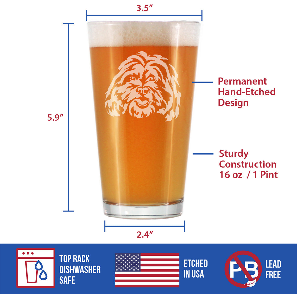 Shih Tzu Face Pint Glass for Beer - Unique Dog Themed Decor and Gifts for Moms & Dads of Shih Tzus - 16 Oz