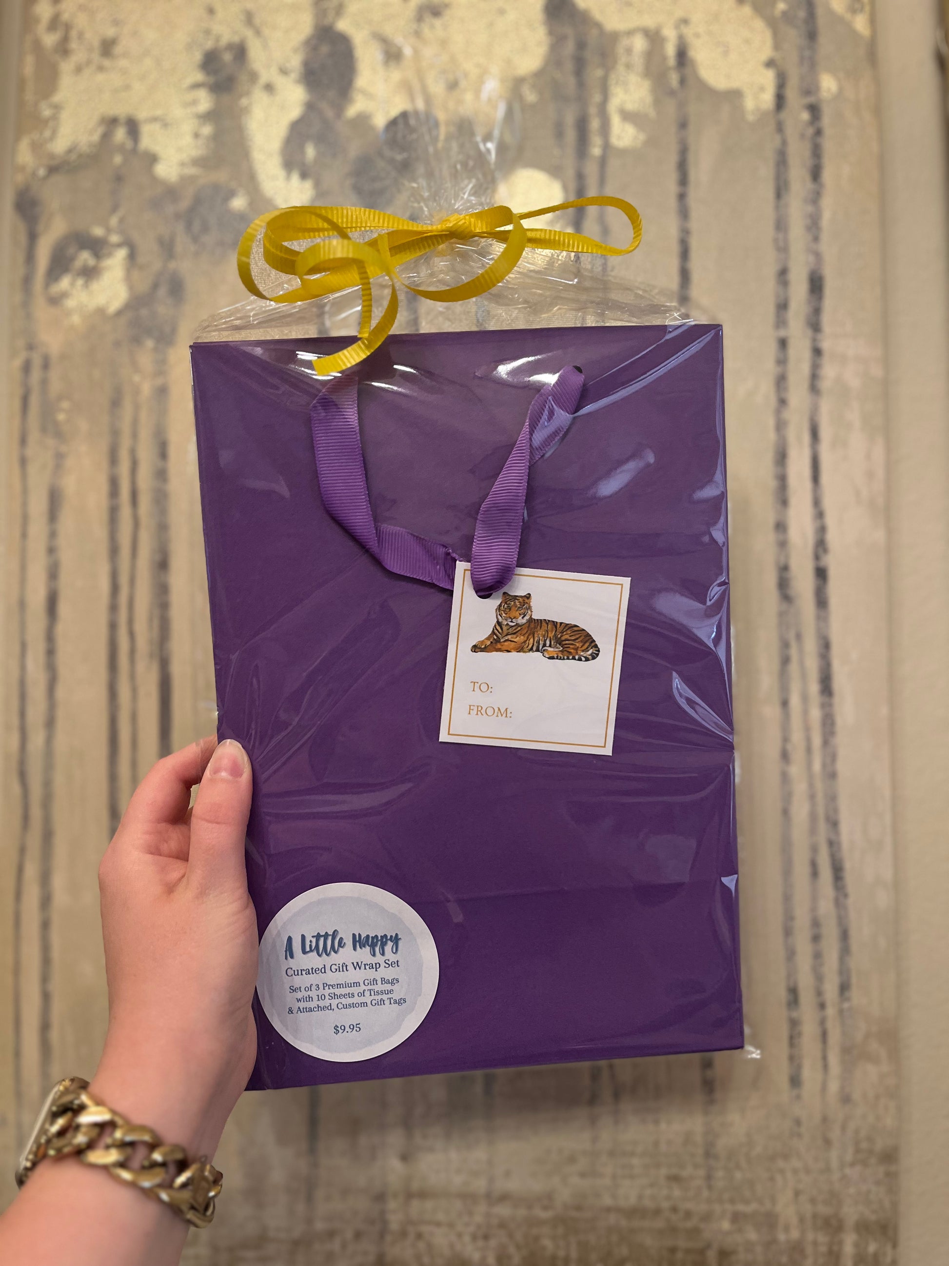 Includes a set of 3 premium gift bags, each with 10+ sheets of luxe white tissue and an attached, coordinating gift tag — thoughtfully designed by A Little Happy, to make your gifting effortless and elevated. No last-minute runs for bags or tissue. No mismatched wrapping. Just beautiful, ready-to-go gifting!