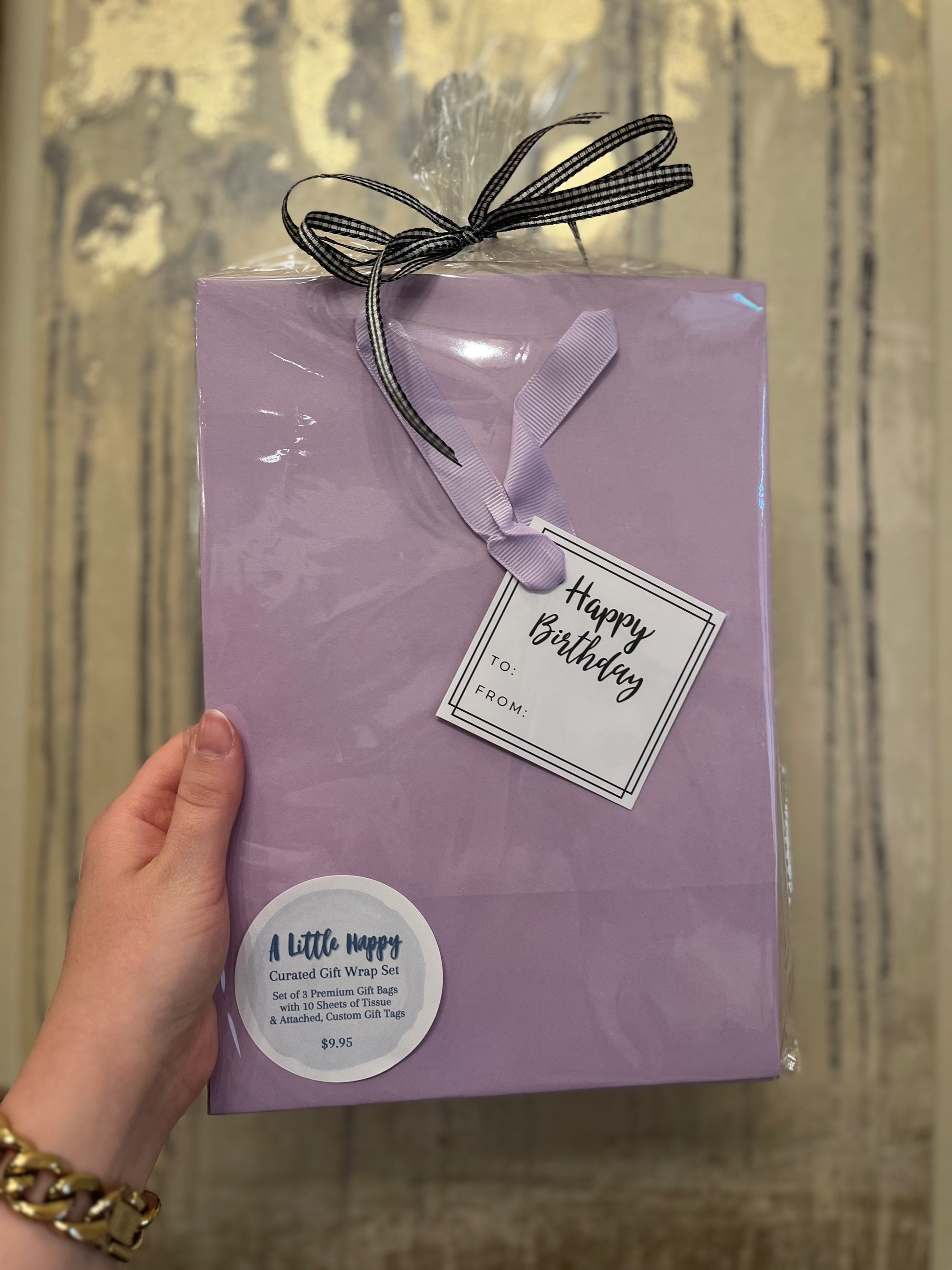 Includes a set of 3 premium gift bags, each with 10+ sheets of luxe white tissue and an attached, coordinating gift tag — thoughtfully designed by A Little Happy, to make your gifting effortless and elevated. No last-minute runs for bags or tissue. No mismatched wrapping. Just beautiful, ready-to-go gifting!