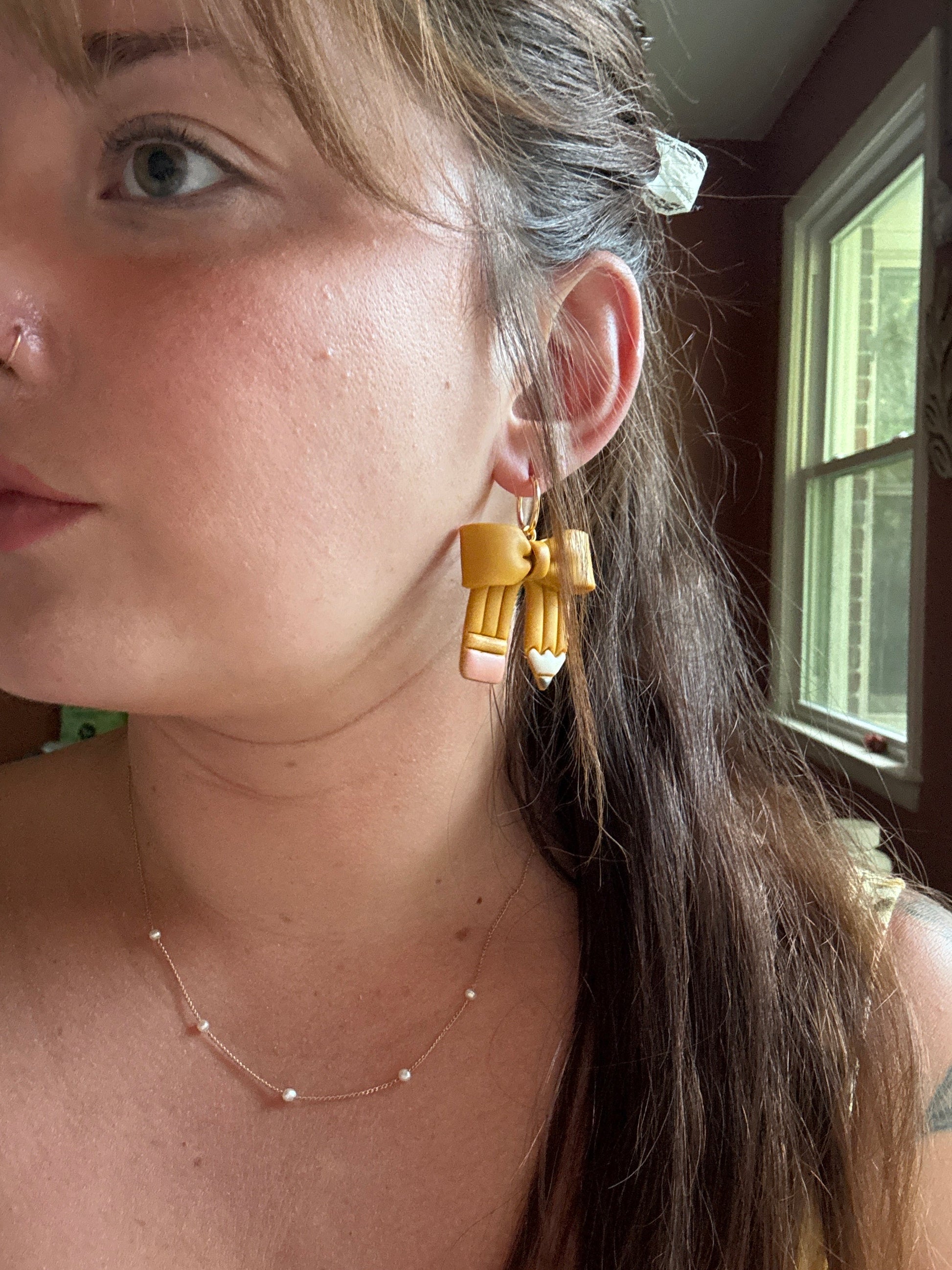 Earrings are made of polymer clay and hardware is 14k gold plated - nickel free. Each piece is rolled, cut, baked, sanded and assembled by hand, so sizes and custom-mixed colors will vary per piece. Due to the handmade nature of my pieces, slight imperfections are inevitable. Every piece is truly one of a kind.